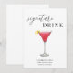 Ce panneau de mariage moderne et élégant pour une boisson signature présente un design minimaliste, une police serif classique, une police de caractères élégante et une boisson d'aquarelle. Modifiez le nom et les ingrédients de la boisson pour votre mariage ou événement. Consultez les articles correspondants dans la collection "Modern Elegant" et d'autres options de boissons dans la collection "Signature Drink Signs". *S'il vous plaît, envoyez-moi un message si vous souhaitez une option de boisson de la liste suivante. Les options comprennent les boissons qui ressemblent : Bliss on the Beach, Bloody Mary, Bramble, Cosmopolitan, Cuba Libre, Dirty Martini, Espresso Martini, French 75, Gimlet, Gin and Tonic, Lemon Martini, Long Island Iced Tea, Mai Tai, Manhattan, Margarita, Mint Julep, Mojito, Moscow Mule, en fer forgé, Pina Colada, Sidecar ou Strawberry Daiquiri.