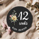 Célébrez votre voyage de grossesse avec cette élégante carte d'étape de 12 à 13 semaines de design floral arrière - plan noir à deux côtés. Doté de belles fleurs et d'un texte personnalisable, il est parfait pour capturer des étapes de grossesse hebdomadaires et faire des annonces mémorables. Idéal pour les baby showers et les photos de maternité.