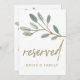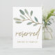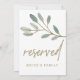 Ce panneau "réservé" à l'eucalyptus veiné d'or est parfait pour un mariage élégant. La carte est recto-verso (tirages sur les deux côtés). Le design simple et somptueux présente une parties scintillant en faux or superposant les branches de feuilles verts d'olivier. Utilisez ces cartes pour réserver des chaises ou des tables lors de votre cérémonie de mariage, de votre réception ou de tout événement. Remarque : Ce design ne comporte pas de véritable parties scintillant en or. C'est un graphisme de haute qualité fait pour ressembler à un shimmer d'or.