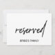 Cette calligraphie fantaisiste "réservée" est parfaite pour un mariage moderne. La carte est recto-verso (tirages sur les deux côtés). Le design est caractérisé par une typographie élégante mais rustique pour un look simple et minimal. Utilisez ces cartes pour réserver des chaises ou des tables lors de votre cérémonie de mariage, de votre réception ou de tout événement.