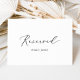 Ce délicat panneau réservé à la calligraphie noire est parfait pour un mariage moderne. La carte est recto-verso (tirages sur les deux côtés). Le design minimaliste romantique présente une belle et élégante typographie noire sur un arrière - plan blanc au look épuré et sobre. Utilisez ces cartes pour réserver des chaises ou des tables lors de votre cérémonie de mariage, de votre réception ou de tout événement.