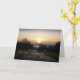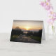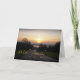 Une image simple et émouvante montrant un coucher de soleil brillant avec une route menant dans un lac en contrebas. Vierge à l'intérieur pour votre accueil