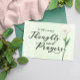 Confortez quelqu'un qui traverse une perte avec ce design élégant qui affiche le message "Avec des pensées et des prières attentionnées." Le design est accentué par un élégant lys et une bordure vintage motif ornée. A l'intérieur a ce message mais peut être customisé. Désolé pour votre perte. Que Dieu vous transporte à travers ce temps, vous fortifiant par Son amour infini, sa compassion et sa paix. Puis, voici un verset de l'écriture de l'espace réservé : Il a certainement porté nos douleurs et porté nos peines. (Ésaïe 53:4) (peut être entièrement customisé ou enlevé).