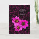 Donnez votre sympathie pour la perte d'un cousin avec une belle carte florale. Des dahlias roses sur un arrière - plan plus foncé avec des gouttes de pluie sur les pétales. Transmettez vos condoléances avec une carte de sympathie élégante.