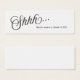 Ce simple insert de carte de taille bachelorette avec shhh dans une police de calligraphie va parfaitement dans nos gatsby d'inspiration bachelorette noir blanc et or invitations de soirée ou n'importe quoi! Il suffit de taper les détails de votre bachelorette et d'insérer ces petites cartes dans les invitations pour être sûr que la mariée a la bonne taille !