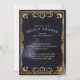 Belle carte de tarot holistique et spirituelle style nuptiale d'invitation de douche. Le design comprend notre propre conception holistique de soleil et de carte de voyage de lune dessinée à la main dans la parties scintillant faux or. Le design est réalisé avec des détails complexes et décoratifs. L'arrière - plan présente un design bleu marine et or audacieux avec des faux étoiles dorées tortueuses. Customisez avec votre monogramme, le nom de la mariée, les détails de l'événement et l'heure. L'envers comporte un arrière - plan d'encre bleu marine audacieux aux accents faux or ainsi qu'un élément de design de lune d'or.