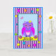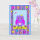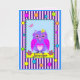 Une carte d'anniversaire avec un chouette dans un cadre décoratif aux motifs colorés (rayures, pois et petites formes géométriques). Cette carte a sur le devant un nom et à l'intérieur du tekst : "Je vous souhaite un joyeux anniversaire !". Le nom et les souhaits que vous tekst sont des objets modèles et peuvent être customisés facilement. Il est également possible de modifier toutes les couleurs arrière - plans avec la fonction edit / (avancé) arrière - plan.
