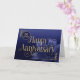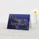Il s'agit d'une carte du 30e anniversaire de l'employé avec le texte 'Joyeux anniversaire' écrit dans une police élégante avec des swashes fluides. Le texte et les détails de la conception ont un effet de feuille d'or attrayant superposé. L'arrière - plan se compose d'un dégradé bleu moyen à bleu foncé, avec une fleur de lys accrocheuse, dans les tons bleu assortis, dans le coin inférieur droit. Le nombre d'années est en haut à gauche. REMARQUE : L'effet de feuille d'or est numériquement simulé dans l'illustration, aucune feuille d'or réelle ne sera utilisée dans la fabrication de ce produit. Conception par NATALIE KINNEAR