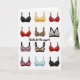 This greeting card features nine illustrated bras arranged in a neat 3×3 grid on a bright white background. Each bra has a different style and color, making the design fun and easy to take in. There’s a black bra with white scalloped trim, a bold golden-yellow push-up style, a leopard-print design, and a red bra decorated with small white hearts for a romantic touch. The illustrations have soft shading that gives each bra a slightly rounded look. Centered in the middle of the grid is the message “thanks for the support,” written in casual, handwritten-style lettering. The clever wording ties the whole design together and adds a light, affectionate tone. This card is a fun and thoughtful way to show appreciation, affection, or Valentine’s Day love to someone special.