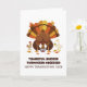 Bring all the laughs to Thanksgiving get-together with this funny turducken Thanksgiving Card, featuring a cartoon turkey, duck, and chicken and the quote "THANKFUL, BLESSED, TURDUCKEN OBSESSED". Perfect for turkey trot gift-giving and Friendsgiving, this Thanksgiving Card can be personalized with your family name and message inside. Totally conversation‑starting, this Thanksgiving Card is a must‑send for anyone who loves the turducken tradition and fall family gatherings. Also available in black.