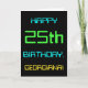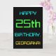 Ce design simple et amusant de carte de voeux d'anniversaire comporte un message comme "HAPPY 25th BIRTHDAY, GEORGIANA!". Son apparence s'inspire du domaine de l'informatique numérique. Le nom à l'avant et le message à l'intérieur peuvent être customisés. Il pourrait être envoyé ou donné à quelqu'un qui célèbre son vingt-cinquième anniversaire, et qui travaille peut-être comme administrateur système informatique, programmeur informatique, administrateur réseau, ingénieur électrique, développeur logiciel, ou qui aime utiliser des ordinateurs. [~Z0000100]