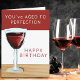 Vin rouge Thème Vieilli à Perfection Nom Carte Anniversaire. Carte de voeux Anniversaire personnalisée avec thème vin rouge - verre de vin rouge sur table en bois, citation humoristique Vous avez vieilli à la perfection dans les couleurs bordeaux et blanc avec un script moderne.