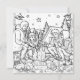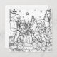 Jolie page de coloriage avec un thème de camping. Une famille ou des amis assis autour d'un feu de camp en train de griller des guimauves.