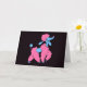 Une carte de vœux colorée représentant un caniche rose et bleu.