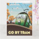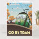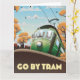 Go By Tram, affiche de voyage de dessin animé vintage avec un ancien tramway vintage.