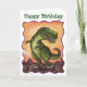 Cute Tyrannosaurus Rex Dinosaur happy birthday feobjets a cute green T-rex dinosaur standing in a prehistoric volcano filbackground with a yellow, orange texture sky behind numally painting by Traci Van Wagoner. Inside is a customizable message that reads, I hope your birthday is filled with tail-wagging good times ! This cute dino card is a great way for all dinosaur lovers, TRex lovers, dino lovers, prehistoric animal lovers to wish their friends a happy birthday. Le Parti Central in our Store and find all kinds of fun TRex Dino themed party toxits, Stickers, t-shirts, invitations, rsvp cards and more ! Have a tail-wagging good time !