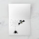 L'avant de cette carte de voeux d'Halloween pour les enfants présente une araignée à l'allure délirante pendant sur un arrière - plan orange vif. Votre texte personnalisé est en blanc sur un côté. Une bannière colorée qui dit "Trick or Treat" est portée par deux chauves-souris noires. Une bordure en toile d'araignée noire et blanche ajoute un intérêt éffrayant. L'intérieur de la carte a une autre araignée suspendue à son web, et a de l'espace pour votre propre message. Mignonne, surtout pour les enfants ! *L'image clipart utilisée dans cette conception est protégée par le droit d'auteur de Encore Software, Inc., qui permet son utilisation à ses concédants de licence. Tous droits réservés.