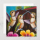 Trois petits colibris époustouflants jouent parmi quelques fleurs lumineuses, un adorable petit tableau à l'huile avec un ciel bleu vif. Celui-ci n'a pas besoin de légende mais vous pouvez le modifier pour en ajouter une si vous le souhaitez. Lumineux, vibrant et stimulant.