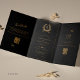 Carte Trois Volets Monogramme photo en or noir QR Code RSVP Détails