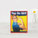 Tu vas y fille ! est le message encourageant avec l'image classique vintage de Rosie la Riveteuse "Nous pouvons le faire" de la femme forte de l'affiche de la Seconde Guerre mondiale. Carte d'encouragement pour montrer son soutien à quelqu'un qui est confronté à un défi de quelque sorte.
