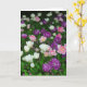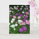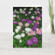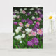 Une carte avec une photo de tulipes en blanc, rose et violet entrecoupées d'autres petites fleurs et feuilles. L'intérieur de la carte a été laissé en blanc et peut être customisé ou laissé en blanc pour écrire un message personnel.