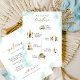 Bienvenue à vos invités avec cette carte magnifique avec une ligne de temps élégante à l'avant et un message accueillant à l'arrière. Montage avec des icônes d'aquarelle dans de belles teintes dorées. Avant et arrière avec de délicates taches d'aquarelle dans des tons bleu poussiéreux, turquoise, aqua et vert doux avec des taches d'or. Calligraphie manuscrite moderne détails en or. Possibilité de "saisir et déplacer" les images d'icônes de la timeline dans un ordre différent pour convenir à votre événement en sélectionnant personnaliser plus loin. Une partie de notre collection "Airy Blue and Green Watercolor" avec une variété de produits de coordination.