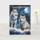 Two wolves in winter with snow, stars and moon. Suitable for a birthday for anyone