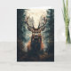 Une scène puissante et dramatique d'un wapiti debout fièrement dans les bois, ses majestueux bois qui s'élèvent au-dessus de la forêt dense. Les ombres profondes et l'atmosphère brumeuse autour du wapiti créent un sentiment de mystère et de force, capturant la beauté brute de la nature.