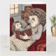 Carte Un hérisson dans une couverture lisant un livre à
