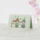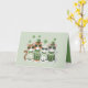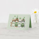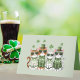 Cette charmante carte de voeux avec son thème festif félin est parfaite pour célébrer la Saint Patrick. Le recto de la carte présente quatre chats vêtus festivement de chandails verts et de casquettes ornés de shamrocks. Chaque chat porte des lunettes de soleil, ajoutant une ambiance de chat joueuse et cool à la scène. L'arrière - plan est d'un vert tendre, complétant les éléments verts plus foncés de la tenue des chats. A l'intérieur, la carte continue le thème avec une couleur vert foncé qui complète l'avant. Le message intérieur dit : "Irish you a purr-fect St. Cat-tricks day !", ce qui en fait un délicieux salut rempli de jeux de mots pour les amoureux de les chats, ceux qui ont un héritage irlandais, et tous les passionnés de la Saint-Patrick. Cette carte est idéale pour envoyer des souhaits chaleureux et une touche d'humour à des amis et à la famille pour ce jour férié.