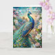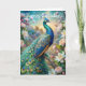 Un paon au milieu des fleurs. Convient pour une carte d'anniversaire pour tous