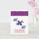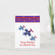 Un design amusant accentue cette carte d'anniversaire. Trois avions en flammes bleues avec des propulseurs rouges. Bordure de rayures bleues et rouges avec de petites étoiles jaunes. Customisez comme vous le souhaitez.