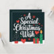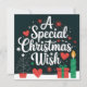 Un design de Noël avec le texte "Un voeu spécial de Noël". Il y a un paysage enneigé avec un sapin de Noël, un cadeau et une bougie. Il y a aussi des étoiles et des coeurs.