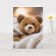Ours en peluche Brown recouvert d'une couverture sur un lit. Le texte est modifiable.