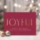 Voici notre Joyful Simplicity Business Holiday Card, une façon élégante et élégante de répandre la joie et la joie festive pendant cette période de vacances. La carte présente un arrière - plan rouge canneberge sophistiqué avec l'expression "joyful" dans des lettres brillantes en faux or. Un choix idéal pour les salutations entreprises ou petites entreprises. Envoyez vos souhaits chaleureux et nos meilleures salutations aux clients, partenaires et collègues de manière mémorable et de bon goût avec notre carte Joyful Simplicity en rouge et or.