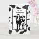 Jolie vache caricaturale avec imprimé abstrait noir et blanc pour l'anniversaire. Tout le texte est modifiable.