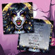 Invitations d'Halloween. Vampire femelle avec des yeux et des dents en or et scintille dans ses cheveux. Des crocs d'or, peau pâle. Cool pour Halloween ou toute personne qui aime les vampires.
