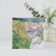 Une belle compilation artistique présente Claude Monet le champ de blé comme arrière - plan avec portrait d'un chat gris à l'aquarelle sur la couronne florale.
