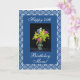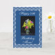 Carte de voeux pour le 75ème anniversaire de maman avec cadre dentelle et foto d'un vase faire fleurs jaunes sur arrière - plan bleu. Personnalisez votre message ! Tarjeta postal en ingles con una foto de un ramo de flores para el 75 cumples de uma mama ! Personnalisez su mensaje ! (puede replazar el texto). Photo Maria Santos (Lusinhas do Sul)