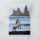 A beautiful white Icelandic mare walks on the black sand beach in Iceland.