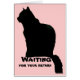 Silhouette d'un chat noir avec le texte "En attente de votre retour" ci-dessous. Personnalisez le message en changeant le texte en ce que vous attendez.