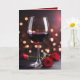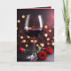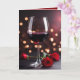 Un verre de vin rouge et des roses rouges pour l'anniversaire de l'épouse. Le texte est modifiable.