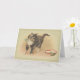Retro / Vintage Cat note. Adorable cat in a blue ribbon staring at a little frog ! Parfait pour chat !