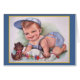 Rétro/vintage carte de voeux de bébé. Petit garçon adorable dans un casquette de boule jouant avec son petit chiot ! Carte de note douce pour toute occasion !