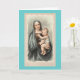 Belle et vintage image de Blessed Mother and Baby Jesus orne le devant de cette carte de voeux avec un verset à l'intérieur pour une bénédiction à la nouvelle mère le jour de la Mère!