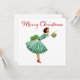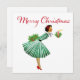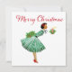 Noël tel qu'il semblait dans les années 1950 avec cette oeuvre rétro d'une dame toute habillée en robe casquette et jupe pleine en rouge et vert étincelant.
