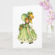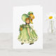 La vintage illustration of a little but dressed à St. Patrick's Day. She carries a basket of shamrocks and gives a flirtatious glance back over her shoulder that would kleany Irish boy's heart ! The Message inside the card is : "A wish that every day for you will be happy from the start, and may you always have good luck and a song within your heart. Joyeux Saint-Patrick !"