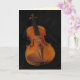 Cette carte de notes présente une vie morte classique d'un vieux violon élégant. Cet instrument gracieux est essentiellement une boîte en bois creux aux extrémités arrondies, deux trous gracieux et un centre étroit. Les quatre ensembles de cordes s'étendent d'un porte-cordes au bas du corps sur un pont surélevé jusqu'à l'extrémité du cou étroit, ou du panneau où les quatre cordes sont insérées dans une boîte à aiguilles et y sont maintenues avec des chevilles. Les piquets sont utilisés pour régler le violon. Lorsque l'arc est tiré à travers les cordes sur le corps du violon, il produit une musique incroyable, magique! Les magnifiques tons marron doré, presque orangés, se marient avec le gracieux velours noir. Un petit violon est à l'intérieur.