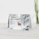 Carte de vœux de la saison avec un élan dans la forêt enneigée.