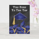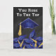 Vous l'avez fait ! L'obtention du diplôme est juste au coin de la rue. Obtenez cette personne spéciale qui rose au sommet avec du travail acharné et étudier une carte de félicitations ou un cadeau avec notre design amusant illustré d'un tas de caps de graduation volant devant un arrière - plan noir texturé avec un casquette volant plus haut que les autres avec les mots en blanc sur le dessus, vous rose au sommet. Félicitations pour votre réalisation !